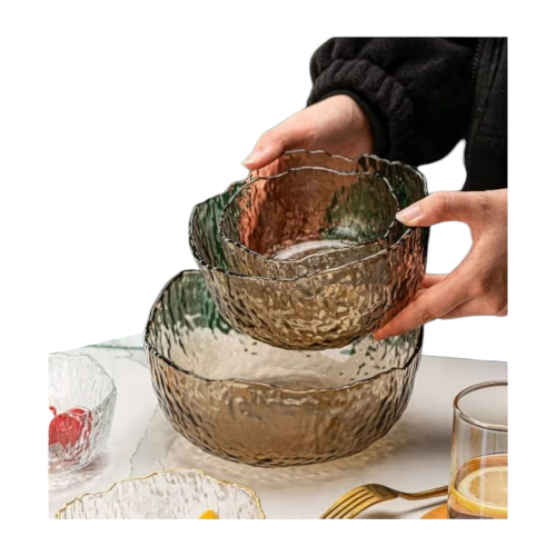 The salad bowl is made of non-toxic and lead-free food grade glass. Thicker bowls have more weight. Glass bowls are not suitable for heating too quickly and freezing too quickly, as this will cause the gold paint to wear away. So not suitable for dishwashers and microwaves and zero-degree refrigerators. It can be used to hold salads fruits vegetables nuts snack biscuits sauces etc. Suitable for home kitchens restaurants bars etc. Home preparation buffet service. A great birthday housewarming Thanksgiving Christmas gift.