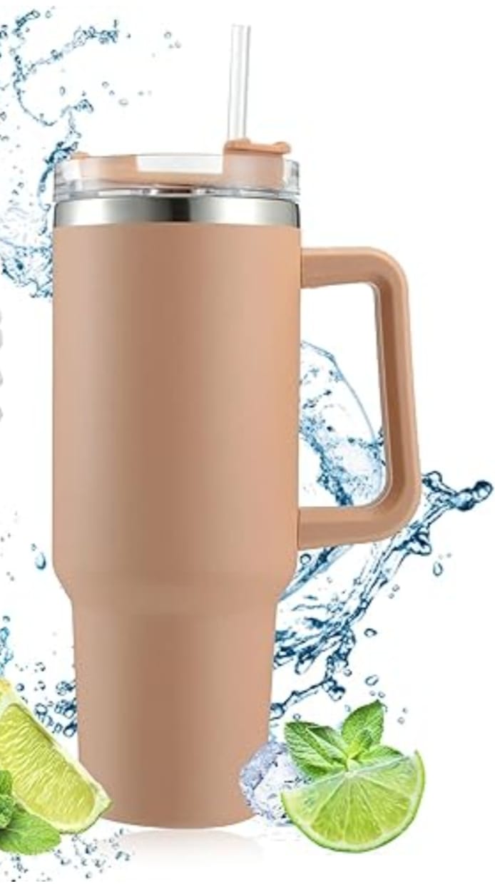 Cp1200ML Stainless Steel Tumbler Reusable Bottle with Handle, Lid & Straw, Double-Wall Vacuum Insulated,Leak-Proof Travel Sipper for Hot and Cold Drinks, for Office, Gym, Car(Random Color))